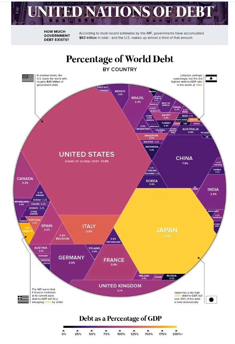 A dívida mundial por país